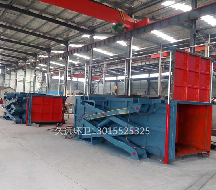1.主要特點 ◇平穩可靠:兩側舉升,剪叉跨度大,升降平穩,無傾斜; ◇淺地坑:地坑深度僅為1.55m,保潔及維修極為方便; ◇高效率:壓實每噸垃圾時間≤10min; ◇全封閉水平壓縮:采用水平壓縮方式,垃圾壓縮密度≥0.86t/m3,垃圾壓縮后體積大大減小,從而大幅度提高轉運車輛裝載量和轉運效率,降低垃圾處理、轉運等費用; ◇動作少,故障率低,整套設備的垃圾壓縮、裝車由三個動作完成,簡單實用,各動作之間安全互鎖,防止操作人員誤操作造成安全事故,安全可靠; ◇垃圾儲存、壓縮及寄存全部在地面以下,地面上沒有垃圾散落,對環境影響較小,環保性好;垃圾壓縮后密度高,水份少,可避免汽車運輸中的垃圾散落、污水滴漏現象,避免二次污染; ◇土建費用低,占地面積小,可以不蓋大型工作間,既節約了投資,也縮短了工期; ◇留有專門的維修窗口,維修保養方便; ◇設有固定式操作和遙控器兩種操作模式,方便實用; ◇自動化程度高,可大幅提高工作效率,降低勞動強度。![]()