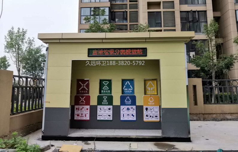 生活垃圾分類投放站廠家定制——久遠環衛是一家集研發生產、銷售服務為一體的大型環衛設備生產企業,公司注冊資金5000萬元,占地面積50余畝,擁有現代化生產車間1萬余平方米,辦公面積1000余平方米,在職員工200多人,具有雄厚的技術及生產實力。 公司主要生產垃圾壓縮中轉站、垃圾分類收集房、環保移動公廁、各類垃圾桶果皮箱、環衛工具箱、環衛道班房、崗亭、休閑座椅、等公共環衛設施。